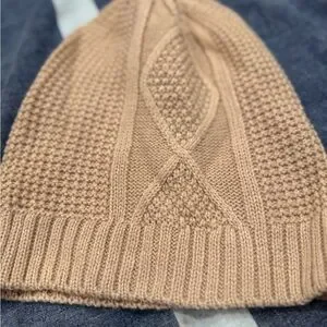 Stylish knit beanie with a textured pattern. Perfect for chilly days. Soft and comfortable.
