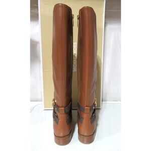 Michael Kors Rory Knee High Riding Boots MK Logo Embossed Strap Luggage Size 7
