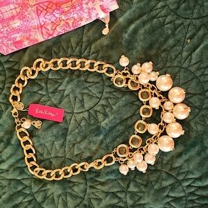 Lilly Pulitzer NWT Pink Palms Pearl & Rhinestone Cluster Statement Necklace