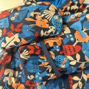 Reposhing this item I purchased from @seemomsell. It kept my baby nice and warm, and now it is washed and ready for the next child. The adorable orange, red and blue animal forest print is adorable for boys or girls. Size 6-12 months from REI, this down snow suit is warm without being too puffy.