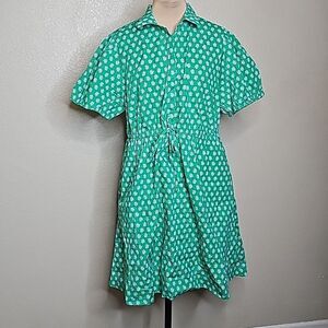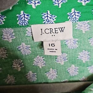 NWOT J.crew 16 Short Sleeve Cinch tie Waist shirt dress green with blue fleur print in excellent condition