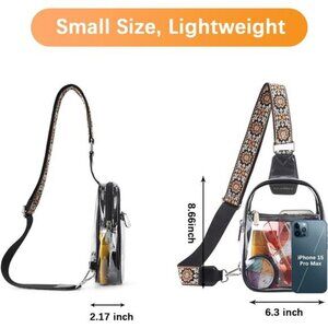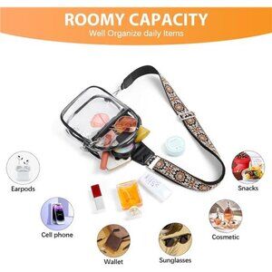 Stadium Approved - This clear crossbody bag stadium approved is 5.39" L x 8.07" W x 1.57" H. The size complies with the regulations of various sports venues, making you more at ease during the game. The transparent design ensures that you can easily pass through security checks and convenient access to items carried.