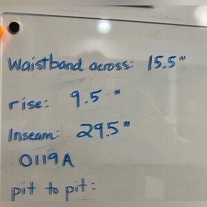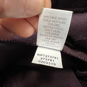 Measurements in pics. Elastic waist. Plum or raisin color called Dark Fig. Stretchy. Faux fly. Front and back pockets (sewn shut, you will remove the threads to open the pockets). Flattering darts in waist. Fabric would be right thickness for fall, winter, spring. Small. No flaws. New with tags.