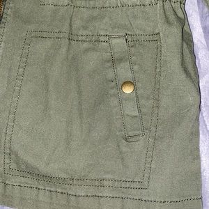 Old Navy XS utility jacket. Olive Green, multiple pockets. Cinch tie at the waist on the inside of the jacket. Very cute. Excellent condition.