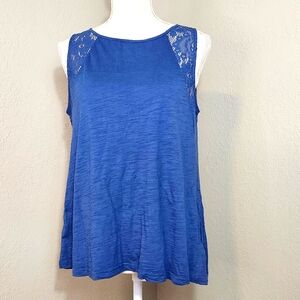 ✨️ Chaps Large Blue Lace Shoulder Sleeveless Tank Top
