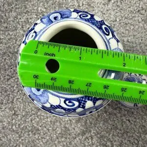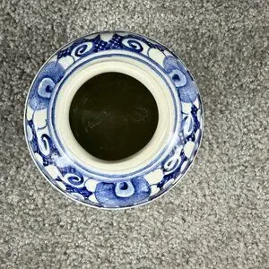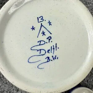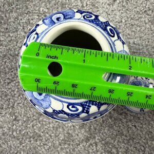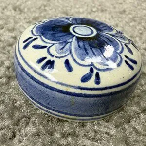 Ginger Jar Blue White Delft DP Pottery 13 B.W. Hand Painted Floral Vase with Lid. Approximately 5 1/2 Inches Tall.