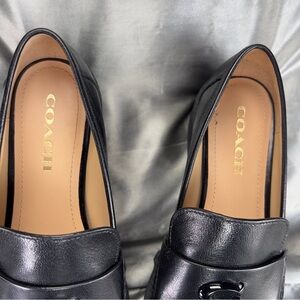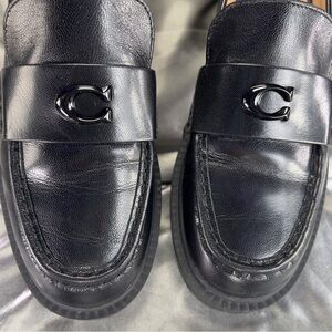 Coach Women's Leah Black Leather Chunky Lug Sole Loafers EUC Size 9 US /39 EU