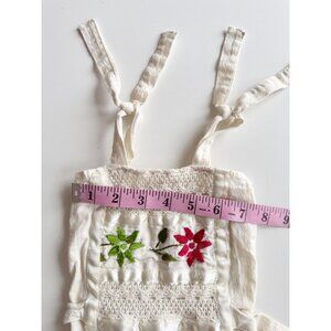 Vintage Girl's Ivory Floral Emrbroidered Cotton Gauze Peasant Dress, Size 2