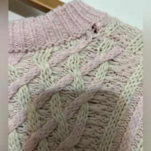 &merci Pink/White Oversized Thick Cable Knit Sweater Size Small