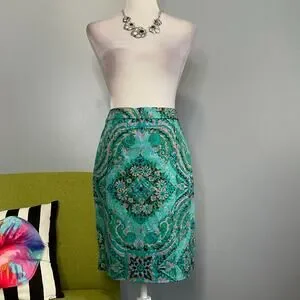 J Crew Green Medallion Cotton The Pencil Straight Skirt 2