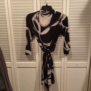 BCBGMAXAZRIA mini dress with 3/4 sleeves and self tie