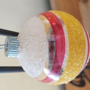 Vintage 50's Shiny Brite Glitter Striped Christmas Ornament in nice condition. Measures approximately 2.5".