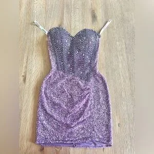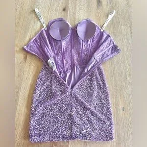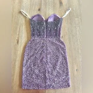 Features: Semi-sheer corset top, padding sewn into bust, zipper back, beautiful rhinestone embellishments.