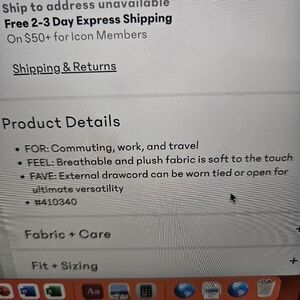 Description in pictures. Ordered and did not fit. Was not able to return. Only tried on once. Brand new. Navy. Super soft.