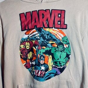 Unisex Marvel Sweatshirt Hoodie Size Medium Tan Iron on decal