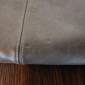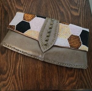 Kate Landry clutch, NWT. pretty taupe color, with beaded design. Does have a few indentions in the leather from storage. See photos.