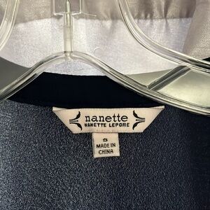 Nanette Lepore S navy blue blouses neck long sleeve with ruching pleated should