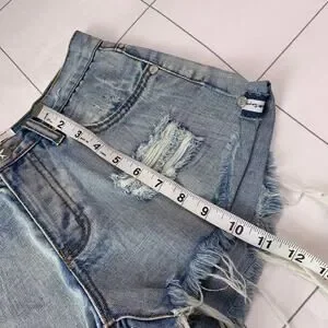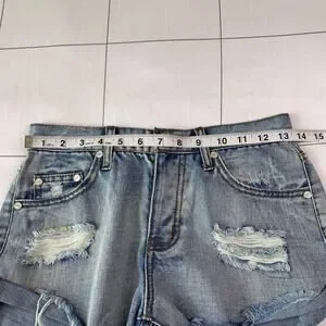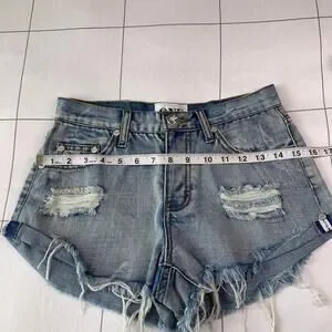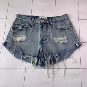 One Teaspoon Shorts Womens 25 Blue Bandits High Rise Distressed Raw Hem Ripped