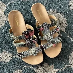 EUC Vionic orthaheel Size 8 wide slip on sandal. Adjustable buckles and Velcro