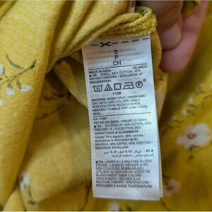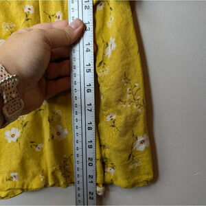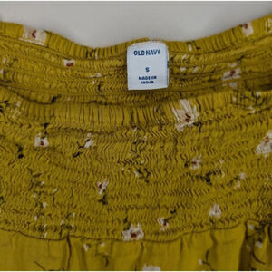 Old Navy Mustard Floral Smocked Front Back Short Sleeve Blouse Women S