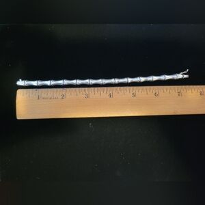 This is most likely a vintage bracelet. I am not sure of the brand, but it is stamped. 925, made in Italy. It has a box style clasp with a safety hook and is about 7 1/2 in long. Comfortable and lightweight.