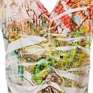 Vtg Body Central Sheath Dress Sz Small? Bodycon Multicolor Multipattern Ruched