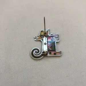 Just found this beautiful doggie pin in a box as we prepare to move to warmer and less taxed climes. I don't recall the brand and there is no markings on it to indicate one, but from checking for similar pins on the internet, this is a Seeka pin. And they go for a whole lot more than I am asking!