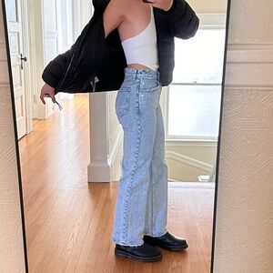Our classic relaxed jeans in a medium wash with a clean hem. This fit features a 10.5” high rise, is fitted at the waist and hips, and eases at the thigh into a relaxed, full-length leg shape. This jean is made from our vintage stretch fabric which features both an authentic vintage look and contains slight built-in stretch for additional comfort.