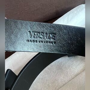 VERSACE GOLD MEDUSA BELT BUCKLE BAROQUE BLACK AND YELLOW PRINT on one side all black leather on the other side. She is REVERSIBLE!!