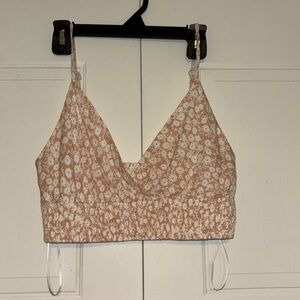 Only worn a handful of times. Pink floral crop top with adjustable spaghetti straps.