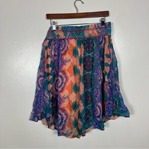 HD Paris Mandara Silk Skirt Medium Asymmetrical Boho Beachy Festival Colorful