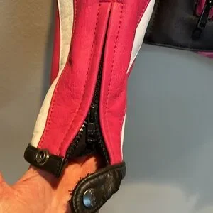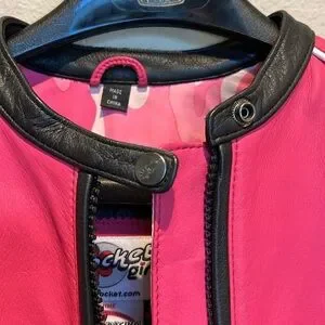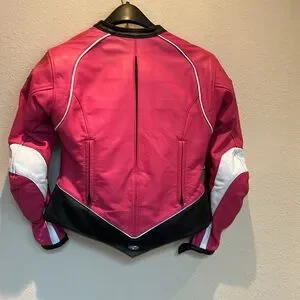 Joe Rocket/Rocket Girl Leather Motorcycle Jacket. Removable armor plates. Zip out liner. Zip air vents. Front pockets. Pink and white. Size XS.