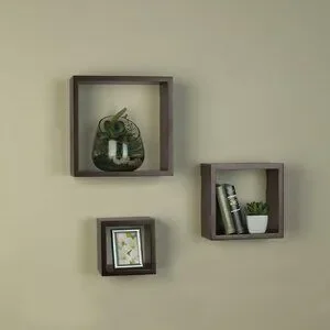 SET OF 3 SQUARE SHELVES: This set includes 3 square shelves; 1 small, 1 medium, and 1 large.