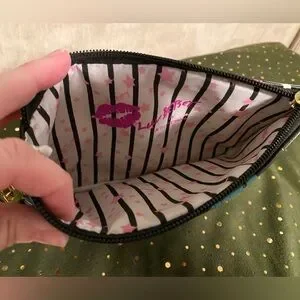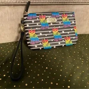 Luv Betsey Johnson Wristlet Green Red Pouch Kitty Cat Rainbow Unicorn Clutch Bag