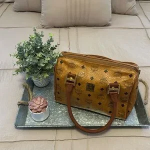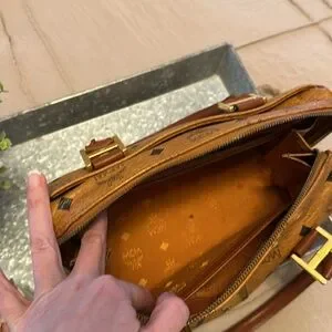 Overall this bag is in good condition. Shows some small signs of wear on the exterior. Gold hardware is still in good condition. Handles are in good condition. There is no crossbody strap. Interior is in pretty good condition with a few marks that I tried to include in the pictures. Zippers are all functional. Base and feet in good condition.