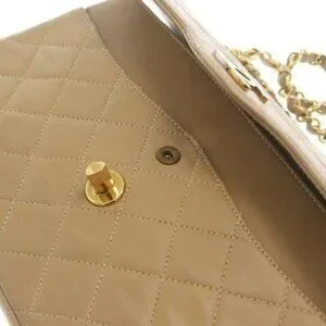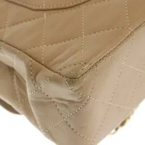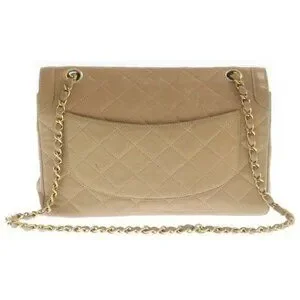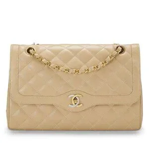 Authentic CHANEL CC Paris Limited Double Flap Bag Lambskin Matelasse Chain Beige