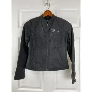 Harley Davidson Black Full Zip Riding Motorcycle Embroidered Jacket Womens S