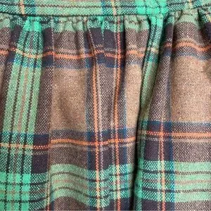 The fabric on this skirt is thick and high quality! Appears to be handmade - no labels. Pockets hidden in seam on each side. Plaid has green, lime, olive, orange, tan and golden hues. Fixed waistband (no stretch) with center back zip and hook and bar closure