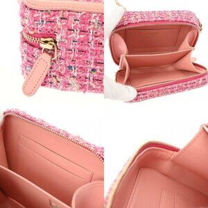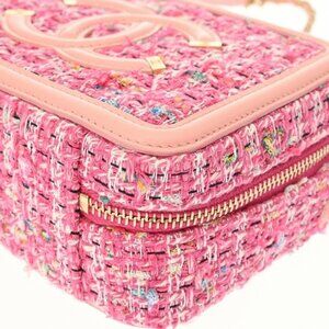 CHANEL Tweed Filigree Vanity Case Quilted Pink Chain Lambskin Bag Tote