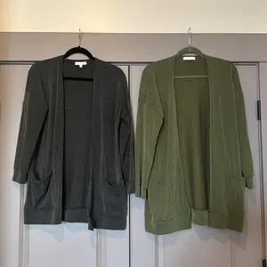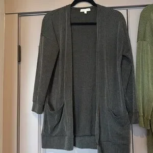 2 Bohme size small cardigans. Olive stripe and charcoal stripe. Excellent condition.