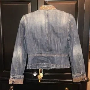 INC Adorable Sequins Rhinestones & Metallic Cropped Denim Jacket-4P-#0051
