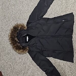 Look like a snow queen in this fitted puffer jacket with beautiful fur line hood that zips off. Includes side zipper pockets and inner coat snap pocket. super soft plush fleece inside. Like new. 23 inches pit to pit. 18.5 pit to cuff. 27 inch shoulder to hem. Size Large