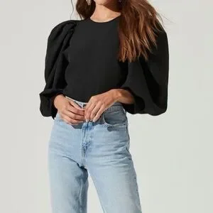 ASTR the label | size large | black bubble sleeve top