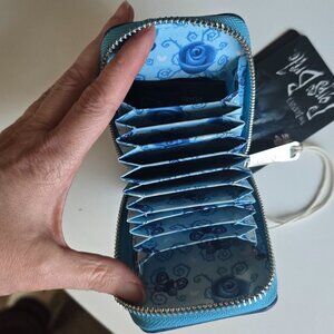 Crafted for fans of the iconic Corpse Bride, this Loungefly x Corpse Bride Scraps Accordion Zip-Around Wallet is a must-have accessory. It features a unique design that captures the essence of the beloved film with its vibrant blue color and intricate illustrations.The wallet is unisex, making it a versatile addition to any collection. Its zip-around style ensures secure storage for all your essentials, while the multiple compartments keep your cards and cash organized. Whether it's for daily use or as a collector's item, this wallet brings a touch of whimsy to any ensemble.