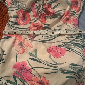 True vintage union made playsuit style floral swimsuit. 50s 60s style Gabar New York says a size 14 but fits closer to a size 8 please see measurements below for specification. In great condition for the age some wear that has been photographed above. Unique, vintage piece, super cute and flattering.