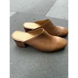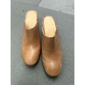 Nisolo Womens Mule Shoes Size 8.5 Brown Leather Chunky Heel Closed Toe