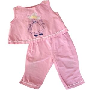 Vintage 2 Piece Top & Bottom Outfit Pink Dutch Girl Baby 12 Months