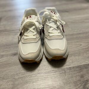 The pics don’t show it well but they are beige (cream) and maroon (burgundy)