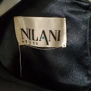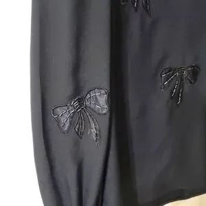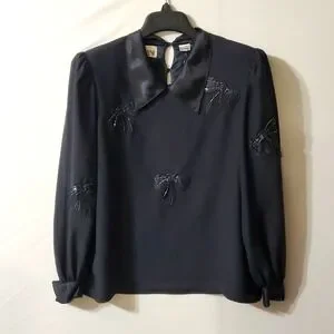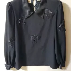 Vintage Nilani Black Long Sleeve Satin Blouse with Beaded Bows Sz 2