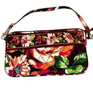 Pretty wristlet wallet called English Rose by Vera Bradley in quilted pink, purple, green, brown and blue flowers